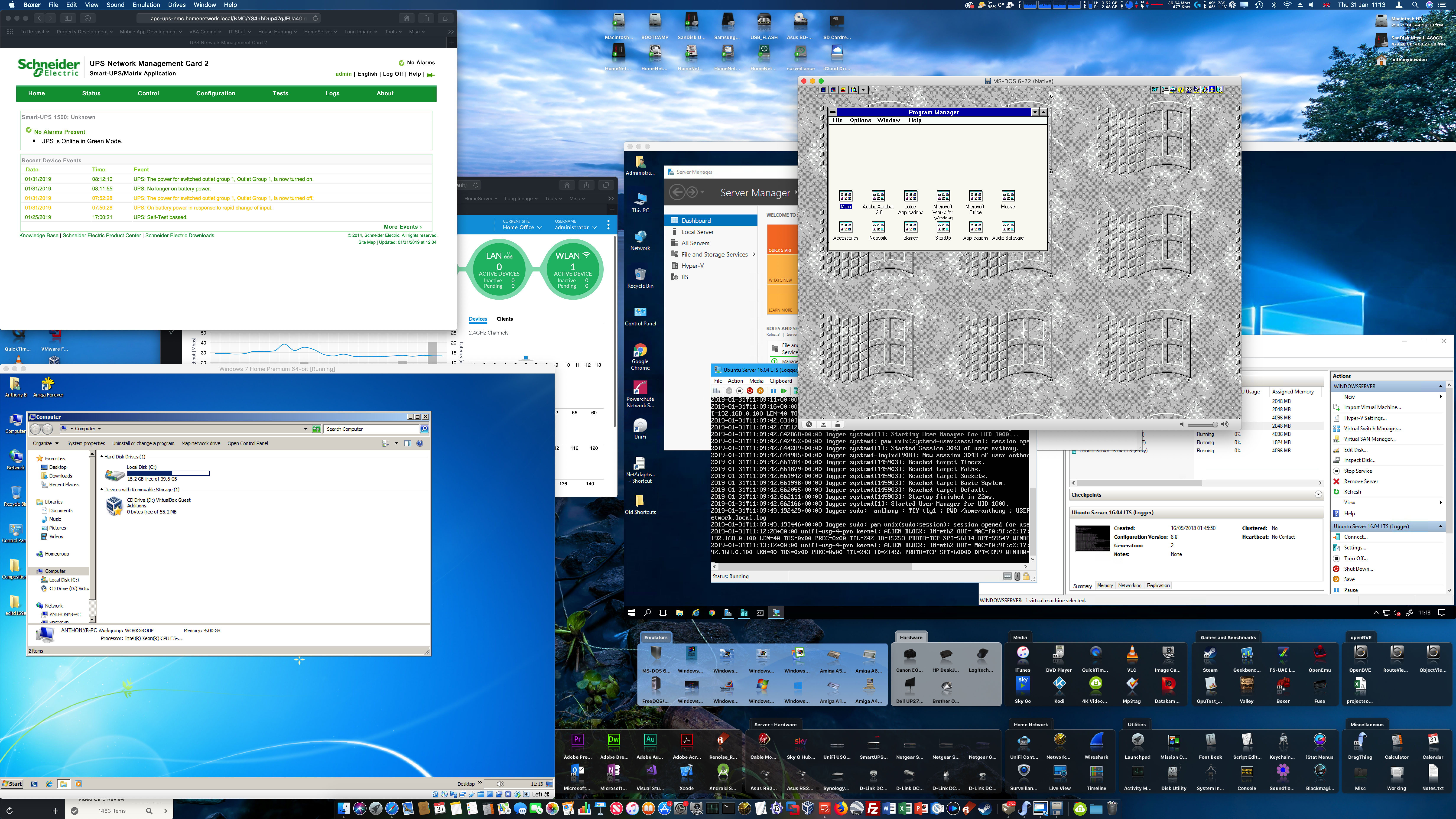 I quite frequently use VirtualBox on both Windows 10 and macOS, along with VMWare Workstation Pro on Windows and VMWare Fusion on macOS for any testing I need to do with other operating systems on my desktop PCs, or if I want to use a sandboxed environment for any reason, or just for the pure nostalgia of running Windows 3.11 For Workgroups or Windows 95! I use DosBOX on Windows and Boxer on macOS, for running DOS games an early MS-DOS based versions of Windows. I also use WinUAE as part of Cloanto's Amiga Forever to relive some of the great Amiga Workbench 1.3 and 2.0 days!
