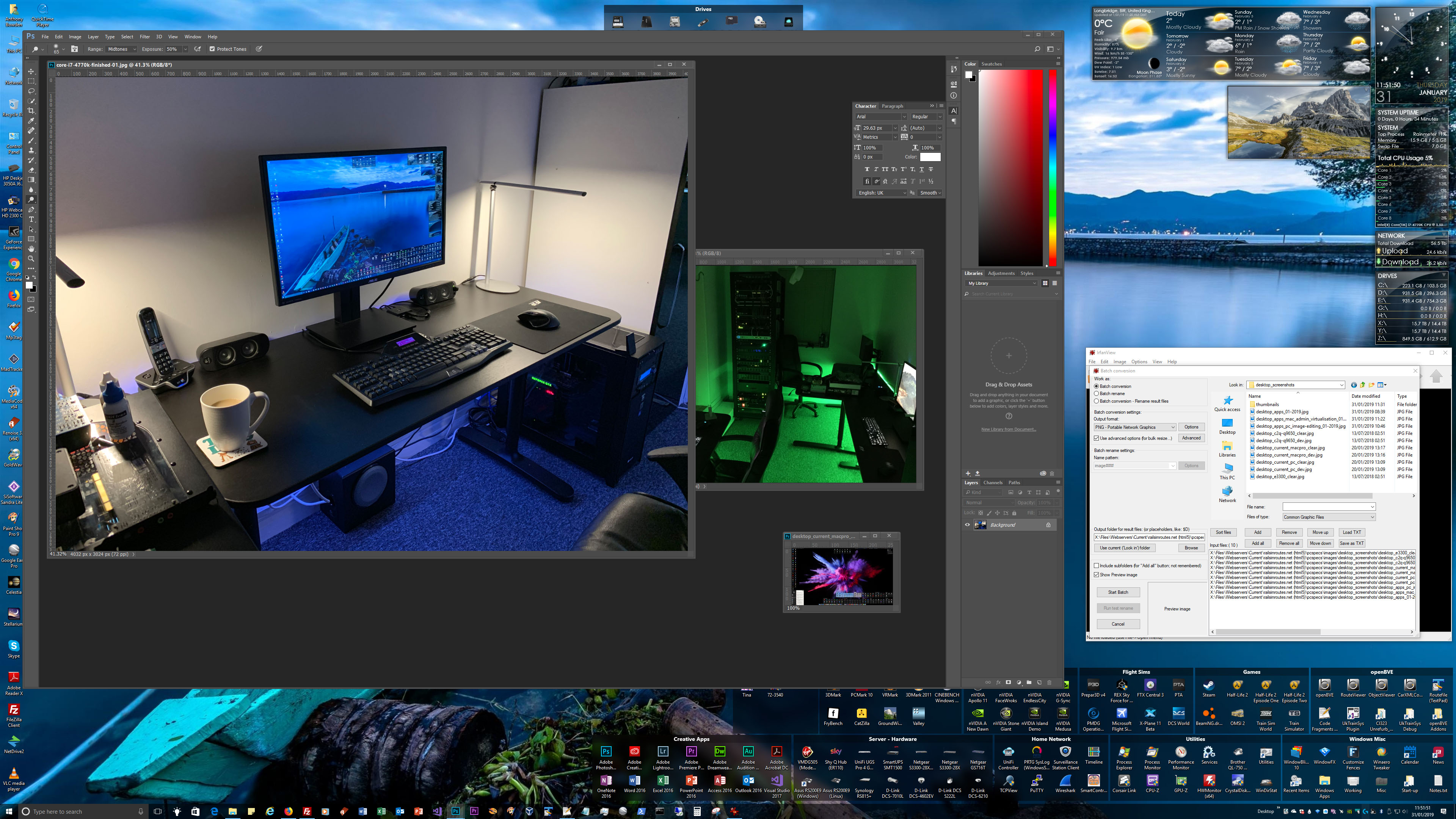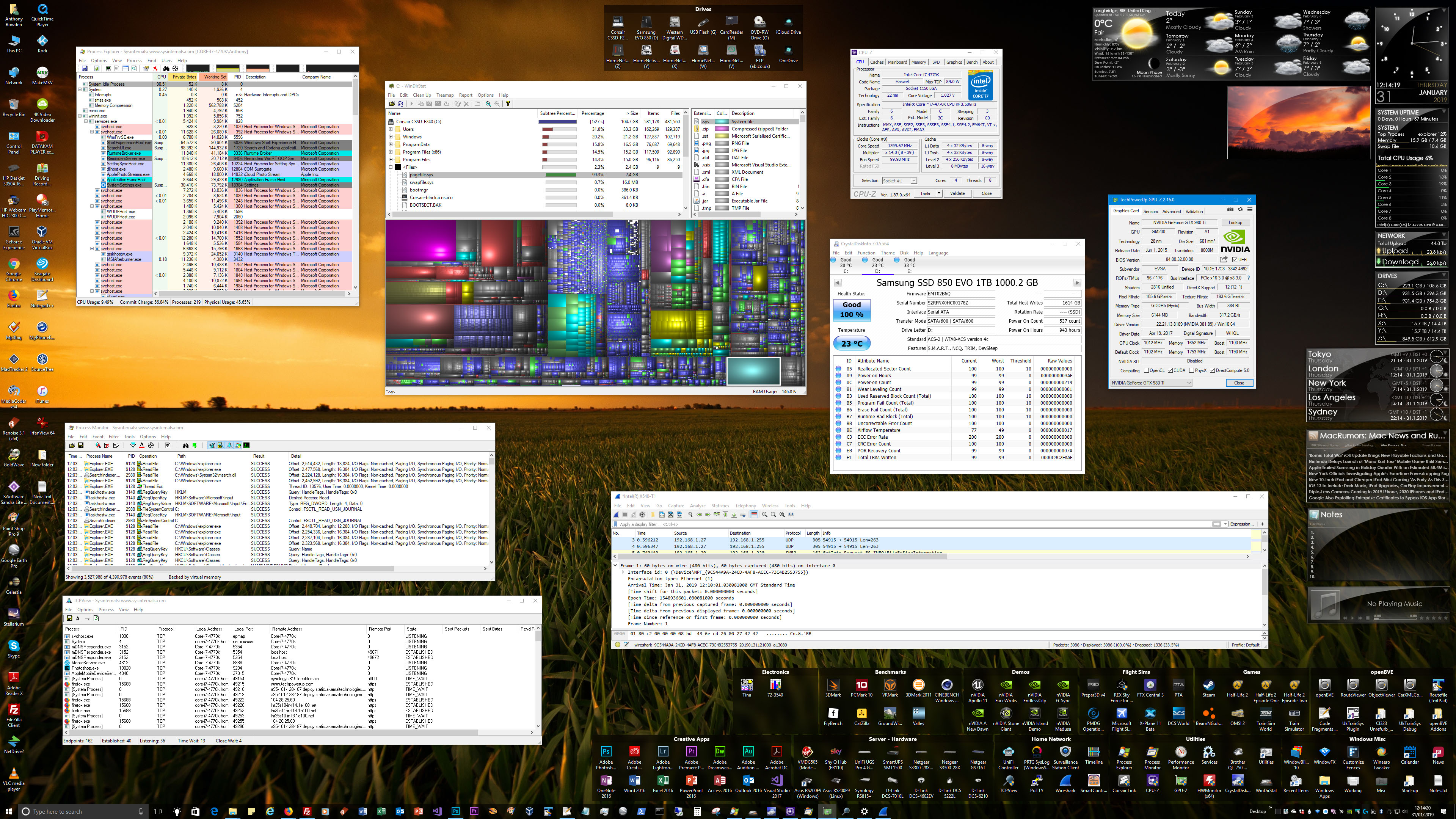 I also use a variety of utilities in the course of using my systems and maintaining them. For Windows 10 customisation, I use Winaero Tweaker, Stardock WindowBlinds 10, and Stardock Fences. For system maintenance and monitoring, I use HWMonitor, CPU-Z, GPU-Z, CrystalDiskInfo, WinDirStat, and SysInternals utilities including TCPView, Process Explorer and Process Monitor.