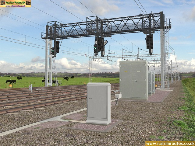 In 2004, I made a crucial design decision which I had hoped would enable me to create a wonderfully detailed and accurate route, while still being usable with BVE's limited rendering capabilities. I wanted to model the route with a far higher level of detail, down to differences between individual signal gantries, point motor and backdrive configurations, location specific catenary details, and so-on. For example, almost every signal gantry along the route is different in some way, and I wanted to model these differences. Taking a large, complicated signal gantry object and duplicating the whole thing, so that I could have different signs, or altered locations or designs of signal post telephones at each site, seemed like a very inefficient way to do things, as each object would be both large and almost identical, leading to lots of duplicated data across all the object files. Instead, I decided to split such complex objects up into their component parts, so that nothing was duplicated, while I could then rebuild the entire signal gantry installation from it's component parts via route file commands, and reposition and reconfigure the re-assembled installations, as per their real-life counterparts.